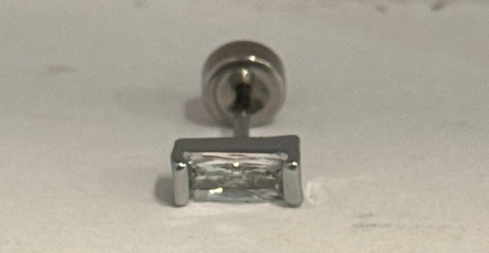 The Aria Flat Back Stud is a sleek statement of clarity and modern elegance. Featuring a baguette-cut clear cubic zirconia set in a polished silver frame, it adds refined brilliance to your ear stack without overpowering your look.
