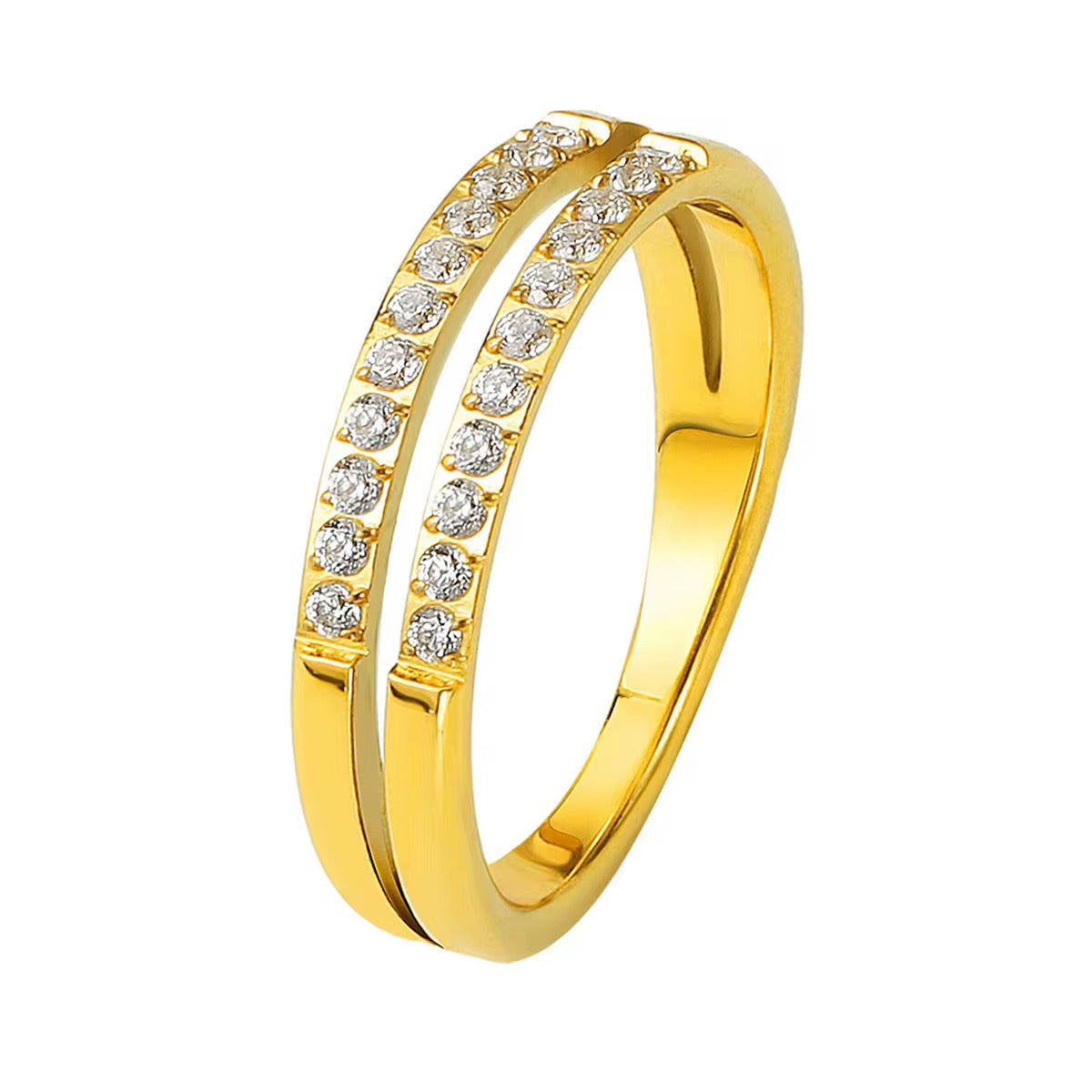 Double the brilliance, double the beauty. The Lustra Ring features two sleek rows of pavé-set cubic zirconia, catching light from every angle for endless sparkle. A contemporary take on a timeless classic, this band is perfect for stacking or worn solo for a sophisticated statement.