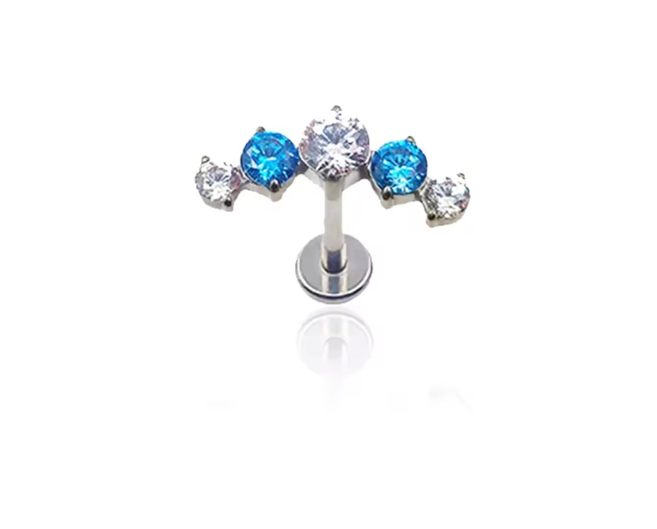 Featuring alternating sapphire-blue and clear crystals set in sleek stainless steel, this piece mirrors the meeting of dusk and starlight — subtle yet full of depth. Its petite form makes it perfect for layering across lobes or as a delicate statement on its own.